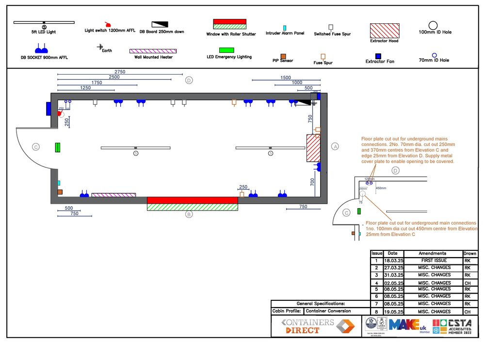 Both containers have steel brackets and box section welded to container for customers own signage and wood cladding.