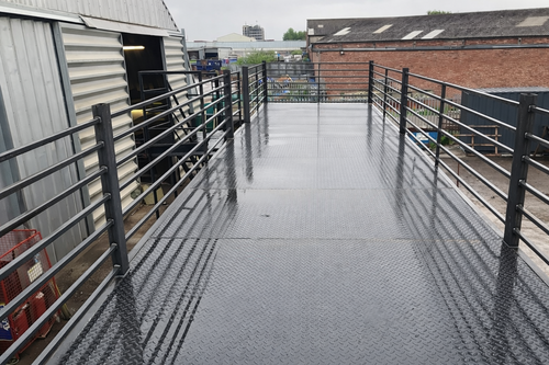 - They are made using box section steel and 3mm durbar steel for the flooring. We usually repaint the platforms in black but other colours are an option upon request.