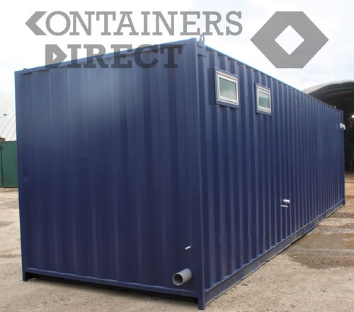 Made for the University of Sheffield as a outdoor welfare office, this container has two separate areas inside, one that contains a 20ft canteen area, the other section holds two toilet cubicles. Access to each section is through three external personnel doors.