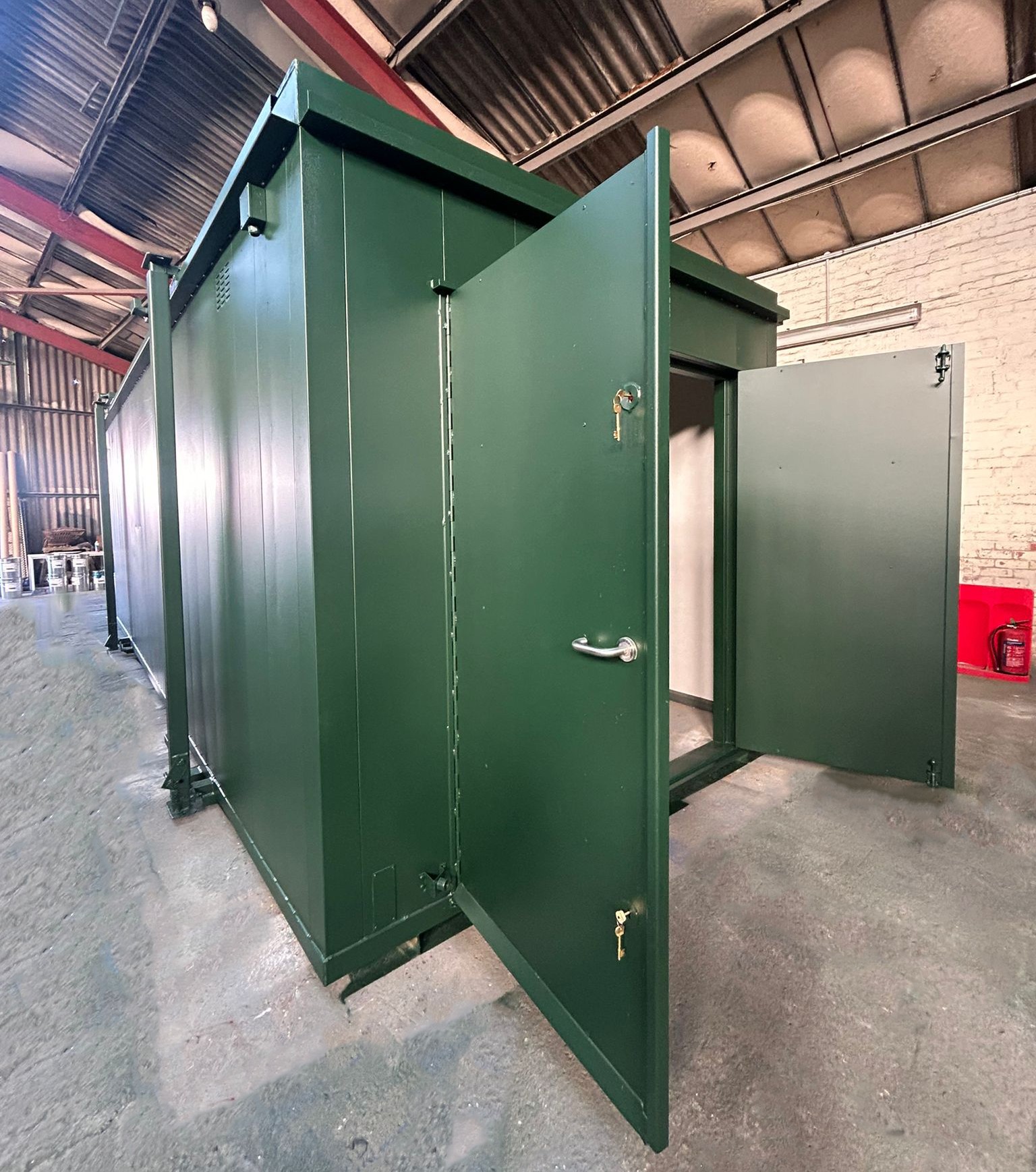 - This container has just been fully repainted in mid Brunswick green and is ready for a new home.